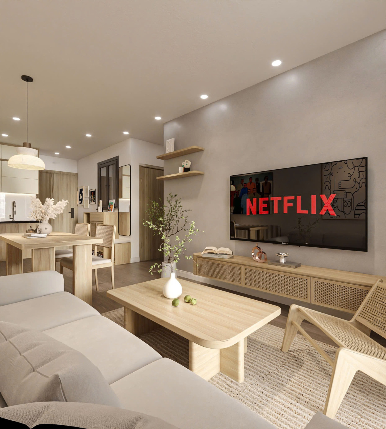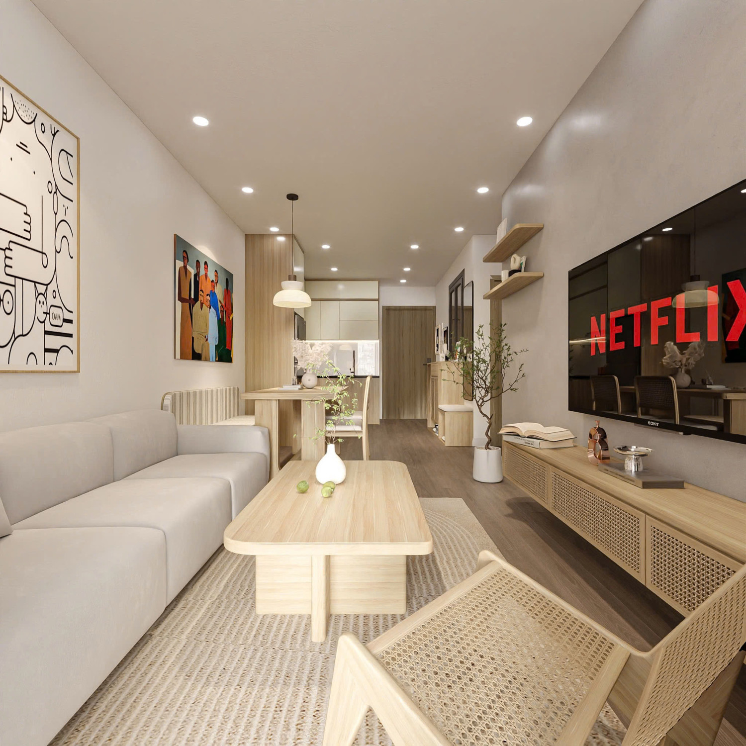 Nội thất trọn gói nguyên căn 2PN + 1 Bếp + 1 phòng khách