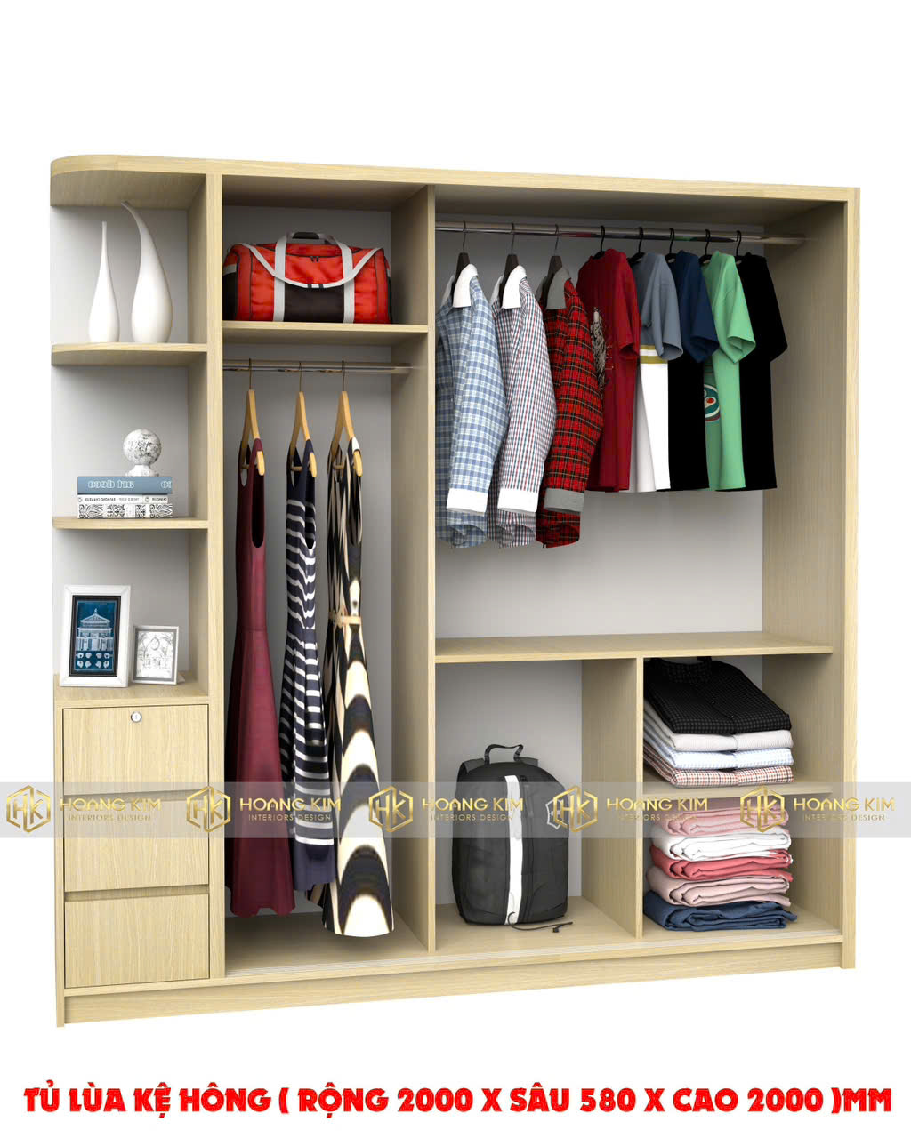 Tủ áo 2m x 2m 3 cánh lùa kệ hông ( Mã màu 240)