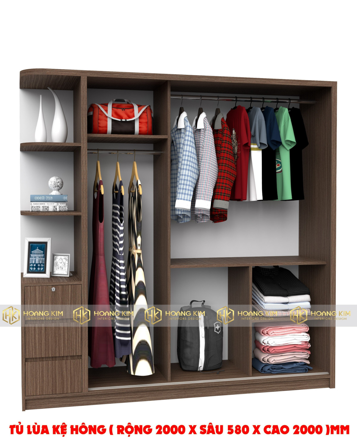 Tủ áo 2m x 2m 3 cánh lùa kệ hông ( Mã màu 340)