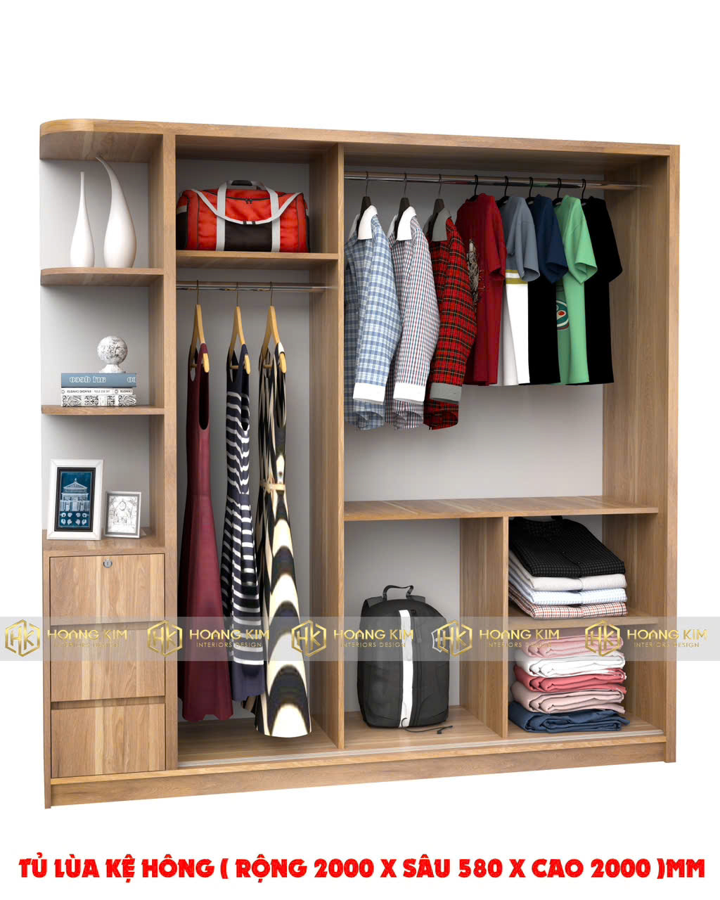 Tủ áo 2m x 2m 3 cánh lùa kệ hông ( Mã màu 919)