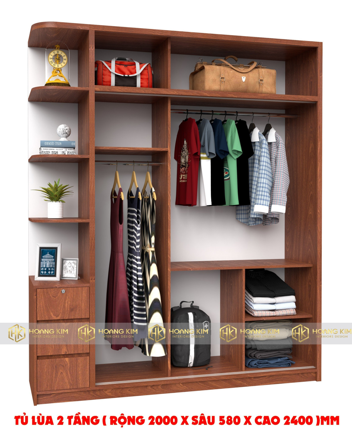 Tủ áo 3 cánh Lùa 2 tầng có kệ hông gỗ công nghiệp MDF phủ melamine cao cấp