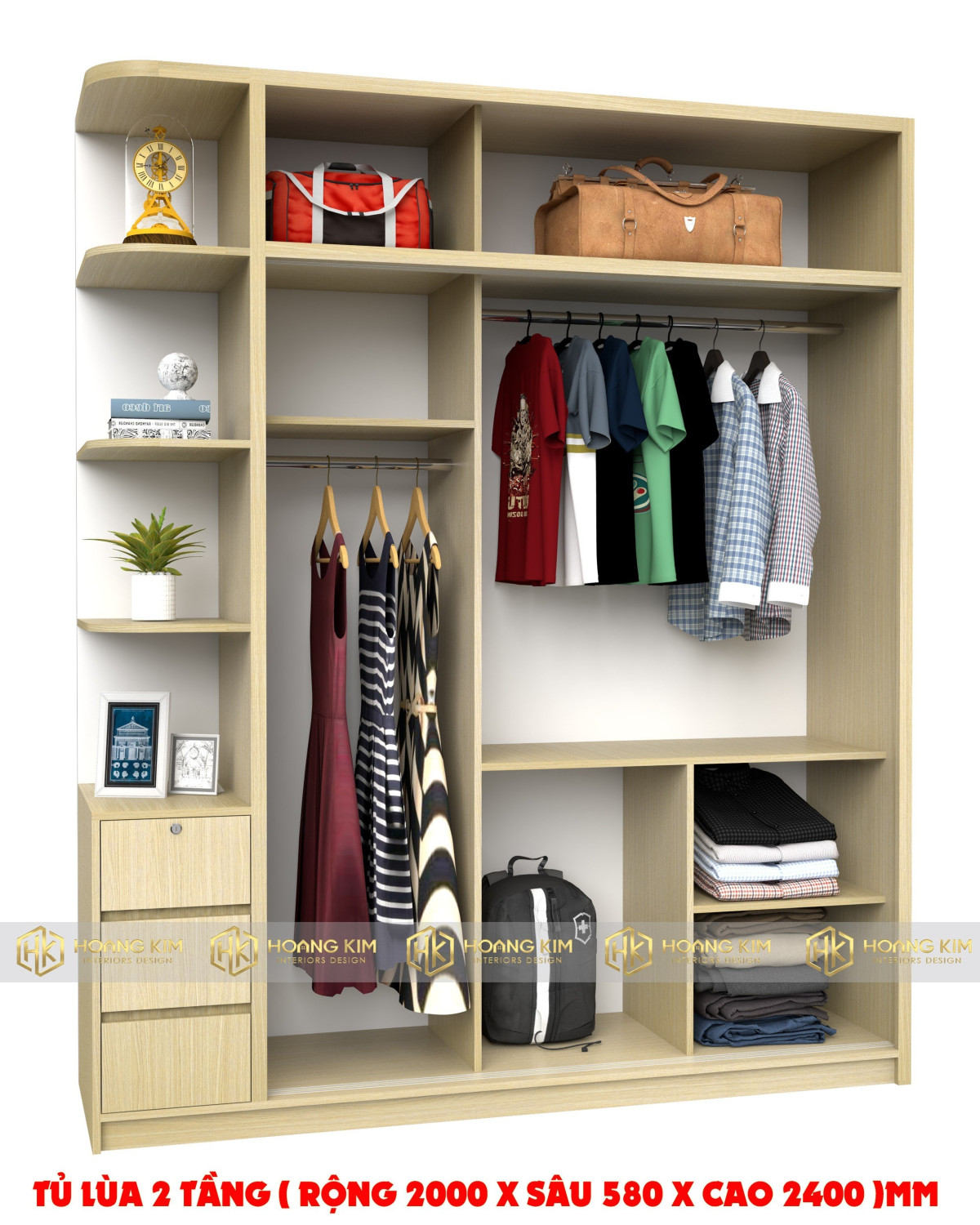 Tủ áo 3 cánh Lùa 2 tầng  có kệ hông gỗ công nghiệp MDF phủ melamine cao cấp