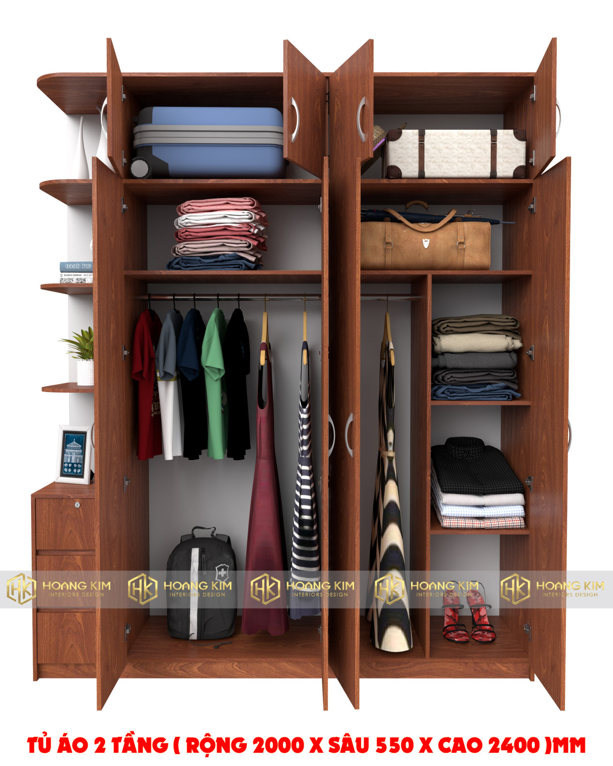 Tủ áo 4 cánh có kệ hông gỗ công nghiệp MDF phủ melamine cao cấp
