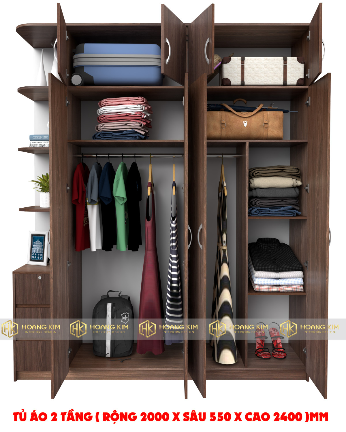 Tủ áo 2m x 2m4 4 cánh mở kệ hông ( Mã màu 577 )