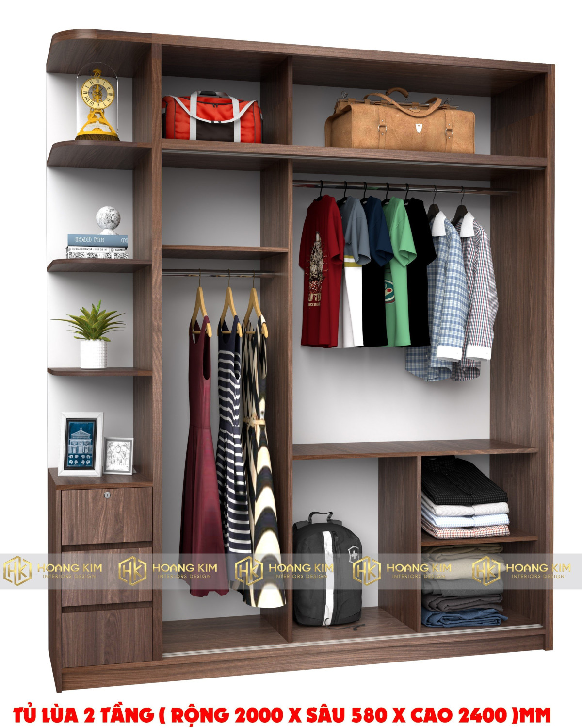 Kích thước : 2000mm x 580mm x 2400mm (rộng x sâu x cao)