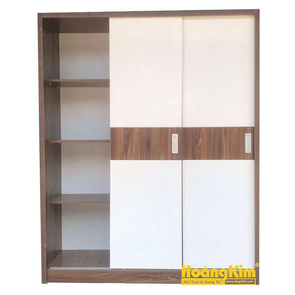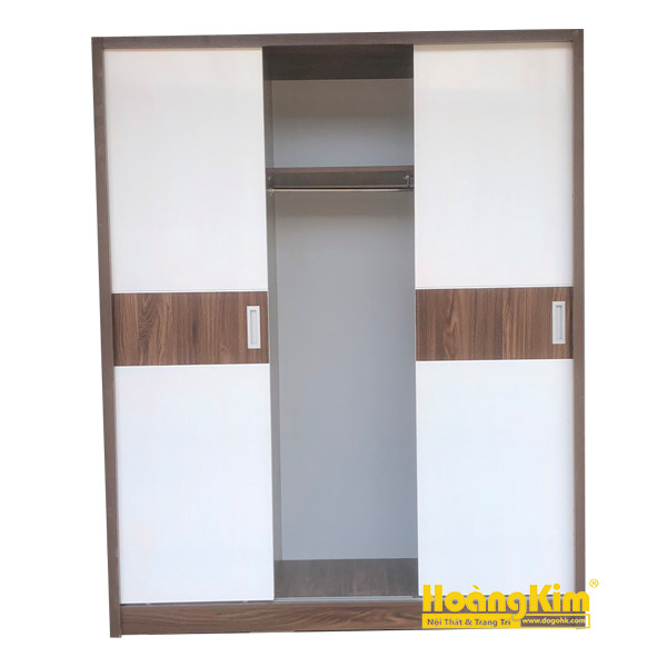 Tủ Áo Cửa Lùa 1m6 Gỗ MDF Melamine Cánh Trắng Sọc Óc Chó