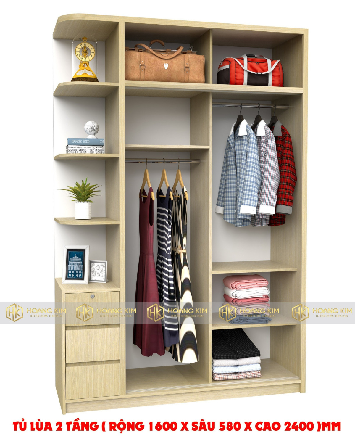 Kích thước : 1600mm x 580mm x 2400mm (rộng x sâu x cao)