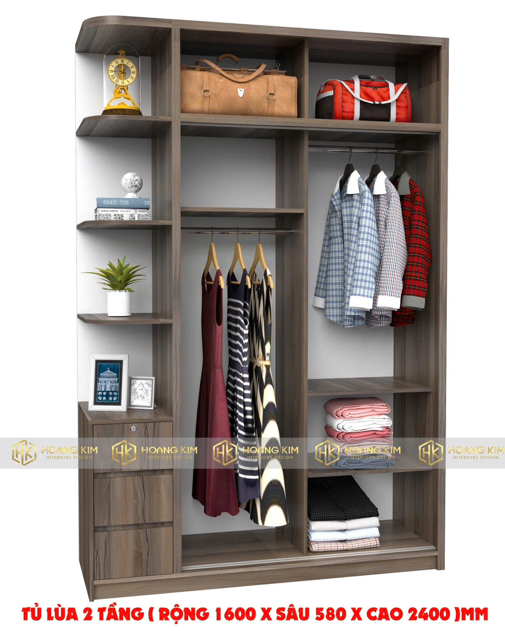 Tủ áo cửa lùa có kệ hông gỗ công nghiệp MDF phủ melamine cao cấp
