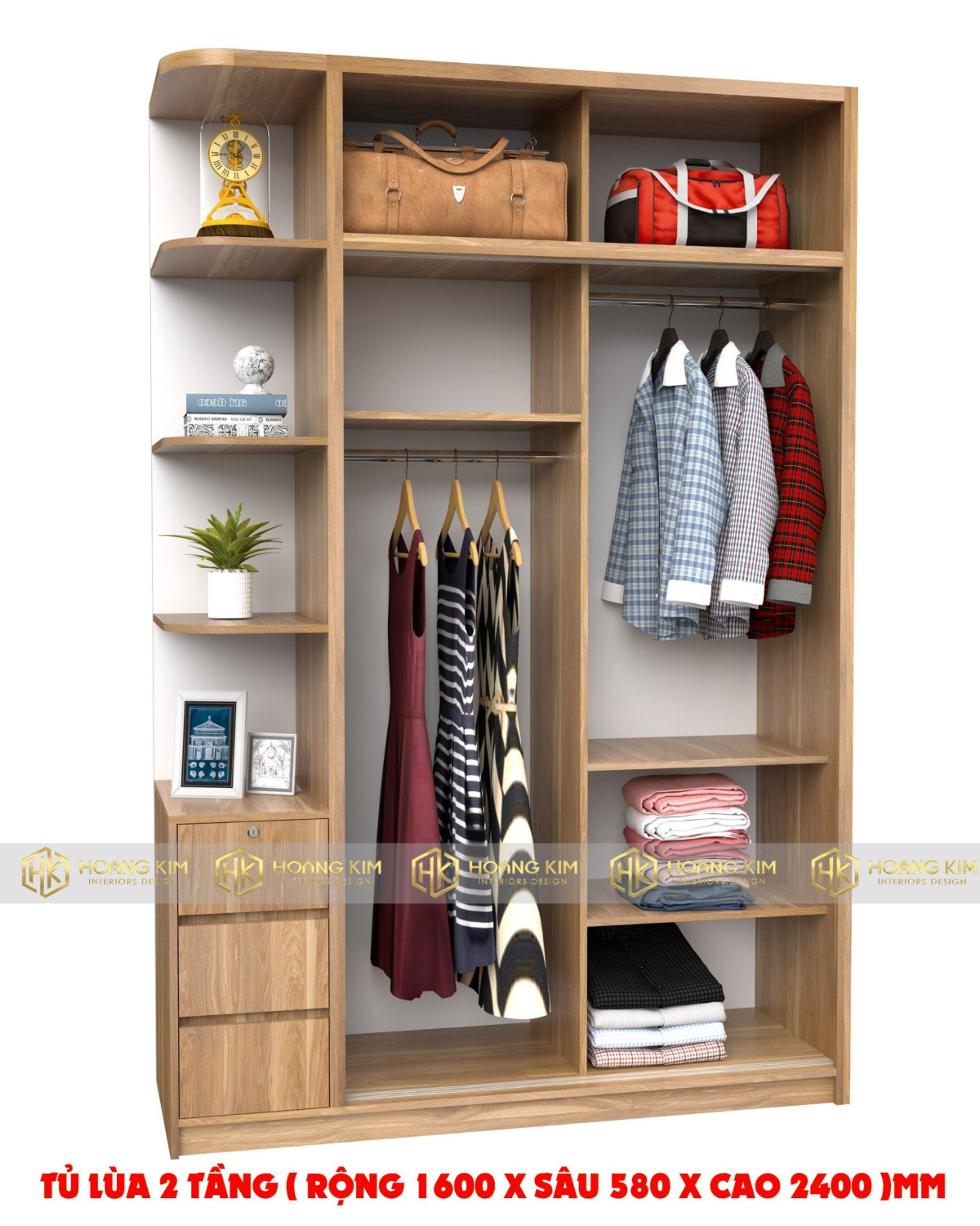 Tủ áo cửa lùa có kệ hông gỗ công nghiệp MDF phủ melamine cao cấp