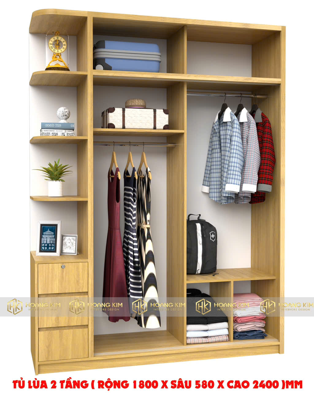 Tủ Lùa 2 Tầng 1m8x2m4 Có Kệ Hông-M388