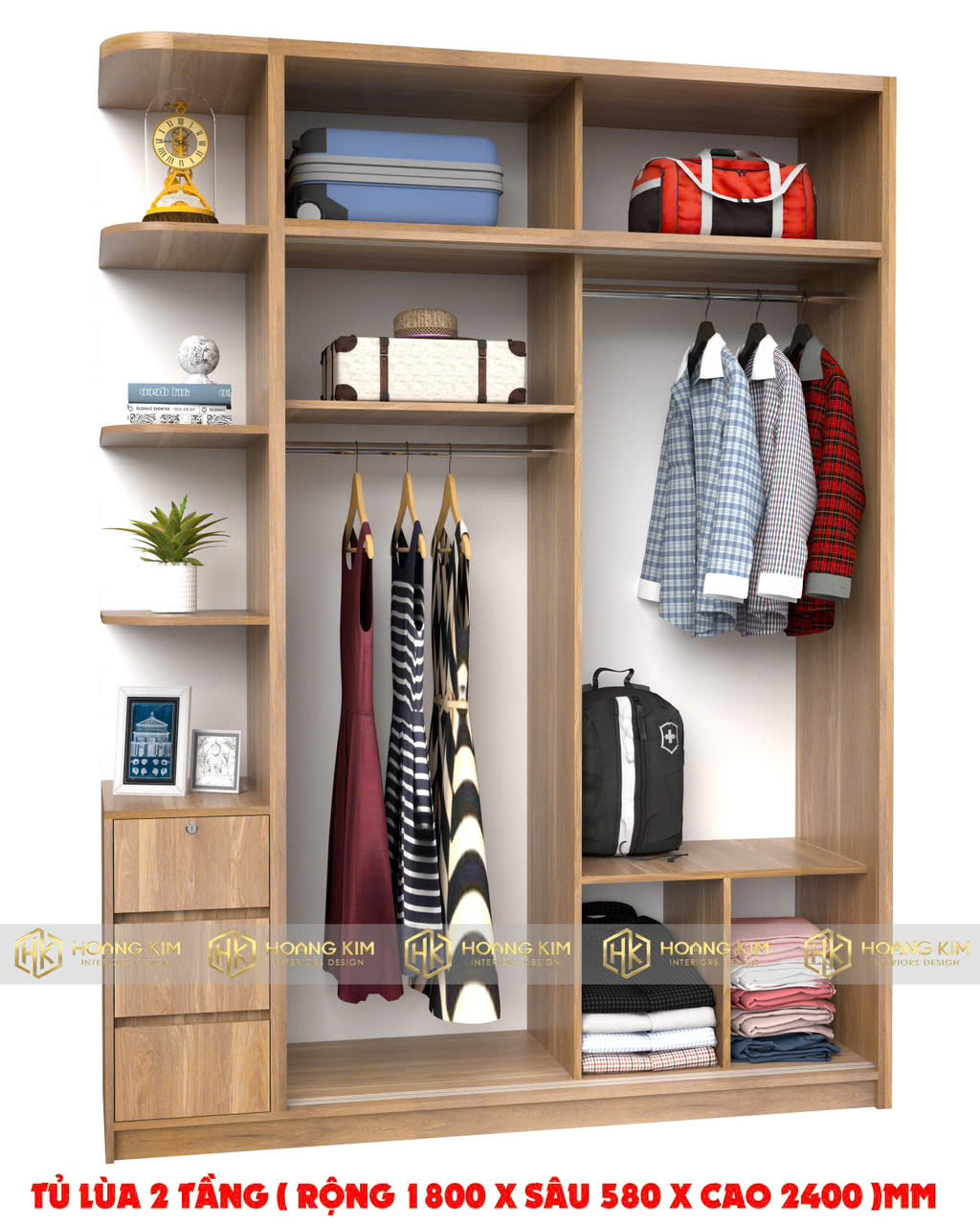 Tủ Lùa 2 Tầng 1m8x2m4 Có Kệ Hông-M919 Tủ Lùa 2 Tầng 1m8x2m4 Có Kệ Hông-M919 Tủ áo 2 cánh lùa có kệ hông gỗ công nghiệp MDF phủ melamine cao cấp