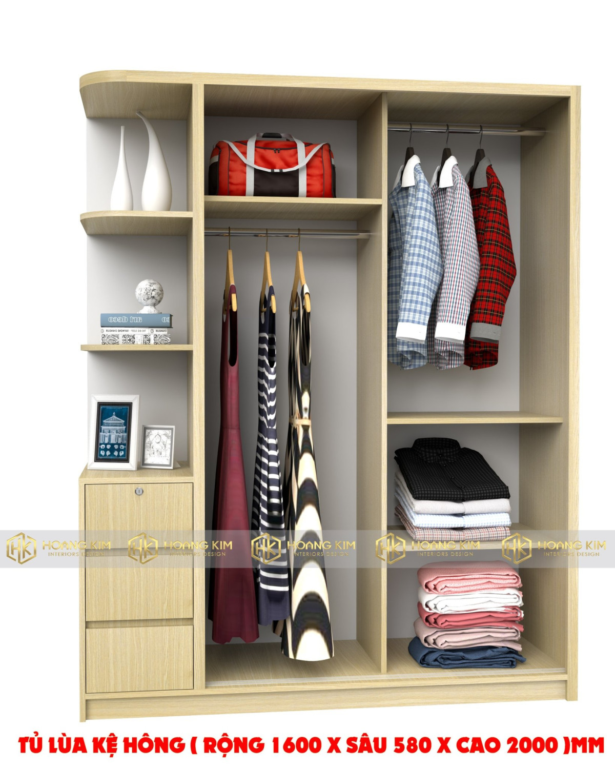 Tủ áo cửa lùa có kệ hông gỗ công nghiệp MDF phủ melamine cao cấp