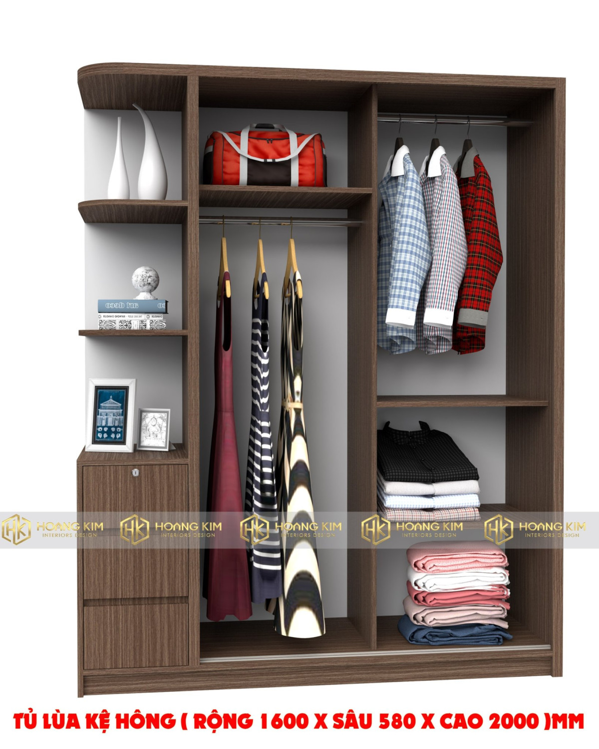 Tủ áo cửa lùa có kệ hông gỗ công nghiệp MDF phủ melamine cao cấp