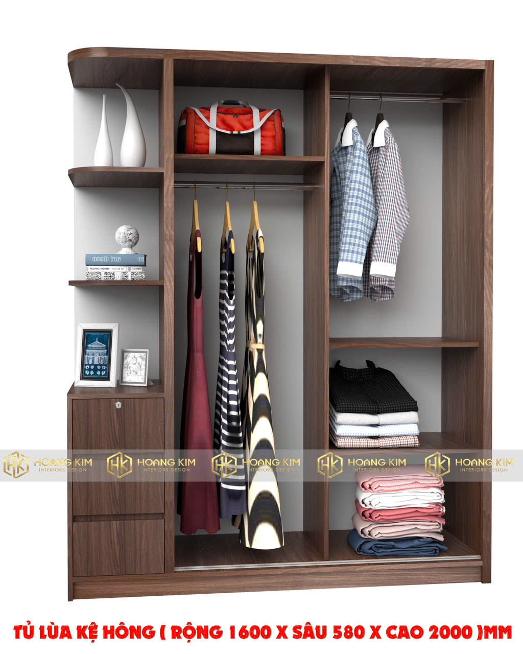 Tủ áo cửa lùa có kệ hông gỗ công nghiệp MDF phủ melamine cao cấp