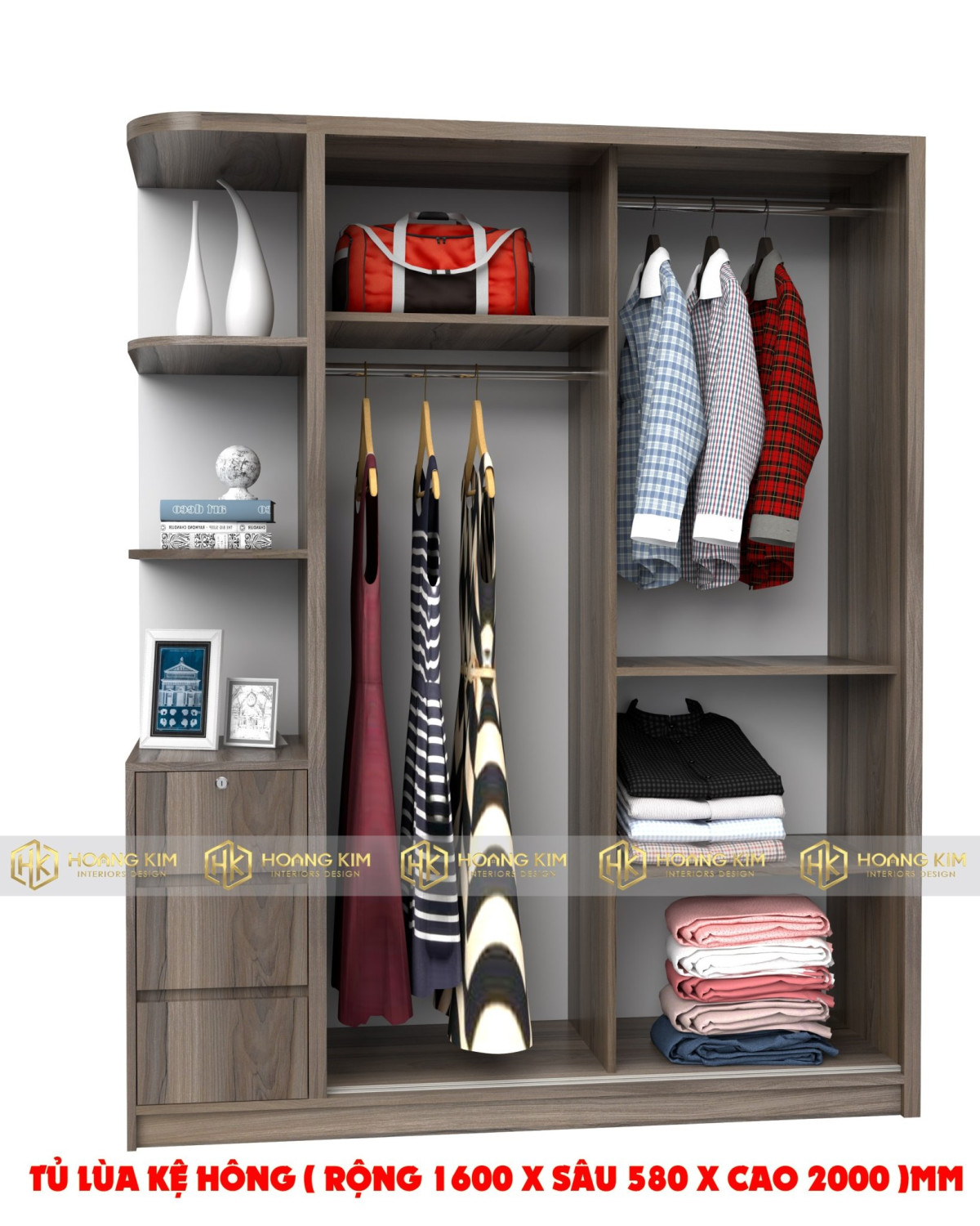 Tủ áo cửa lùa có kệ hông gỗ công nghiệp MDF phủ melamine cao cấp