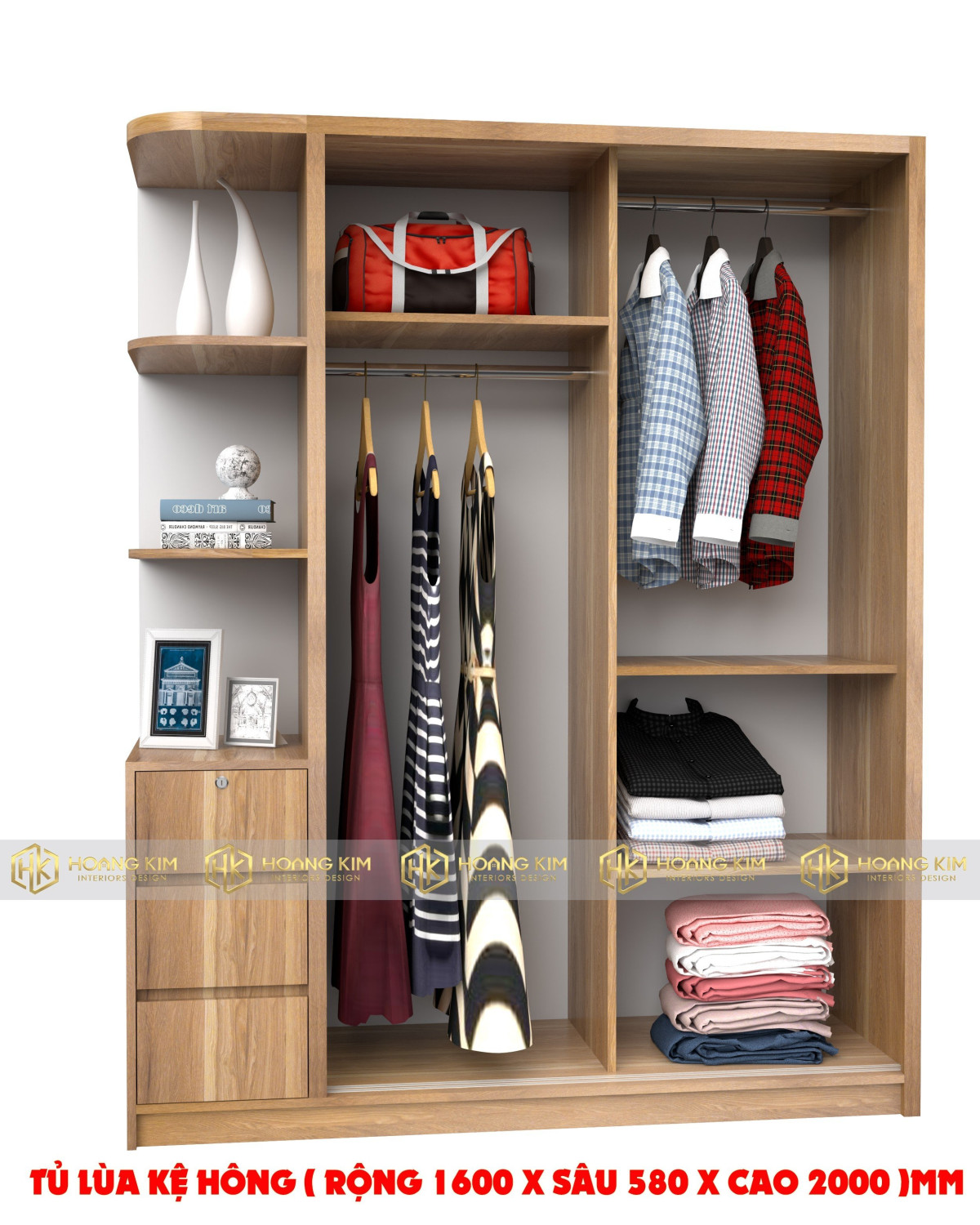 Tủ áo cửa lùa có kệ hông gỗ công nghiệp MDF phủ melamine cao cấp